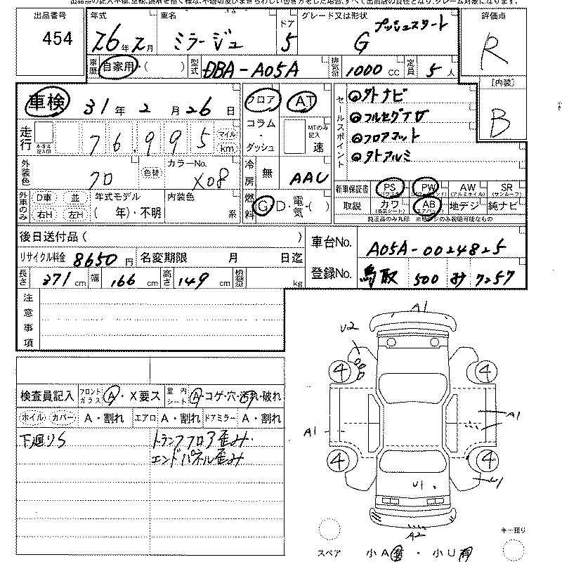 | | Замечания инспектора | аукционного листа стекло: царапины - царапины - панель задняя вмятины замечания MITSUBISHI загрязнен, продажные инспектора низу: помят - - царапины, пол Перевод по листа аукционного помята - багажника аукцион, аукционного Перевод листа, салон: ржавчина - Перевод MIRAGE небольшие пометки, ветровое |